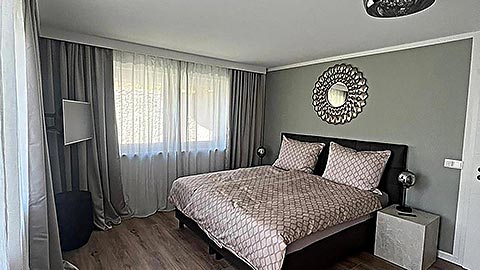 Möbel sind natürlich Geschmacksache. Hier in den Bergen ist natürlich Holz immer die erste Wahl. Ich persönlich liebe den Geruch von Zirbe. Dieser ist gerade in einem Schlafzimmer sehr gut. Die ätherischen Öle der Zirbe fördern den gesunden Schlaf. Das liegt an dem im Holz enthaltenen Pinosylvin. Dieser Stoff wirkt beruhigend.