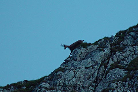 Der Steig führt über schroffes Gelände zum Jägerkreuz. Vor dem Jagerkreuz führt der Steig etwas nach unten, dann auf einem Band den Grat entlang und steigt dann teilweise wieder steil bergauf. An einer mit einem Schild bezeichneten Stelle verzweigt sich der Weg in 2 Routen. Nach links zum Kamin und geradeaus zur Schusterroute.