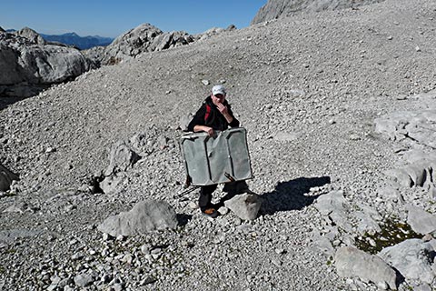 Sie sind bei diesem Steinmandl noch knapp eine Stunde vom Gipfel des Hohen Göll entfernt. Nach der weiteren Stunde Aufstieg erreichen Sie den Gipfel des Hohen Göll und können die atemberaubende Aussicht in das Berchtesgadener Land und Salzburger Land genießen.