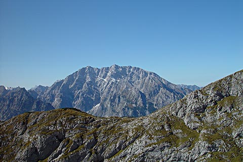 Am Gipfel erleben Sie ein einzigartiges Landschaftserlebnis und einen faszinierenden Ausblick auf den Watzmann, Steinernes Meer, Hagengebirge und Hochkönig im Salzburger Land.