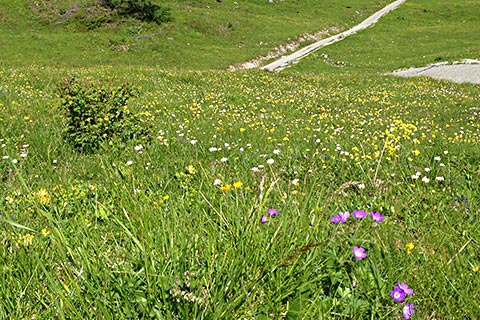 Wir haben uns für die Variante 01 entschieden und gehen gleich zu Beginn der Jennerfelder links über das Krautkaserfeld in Richtung Jenner. Wer es eilig hat kann an dieser Stelle auch zur Mittelstation der Jennerbahn gehen und mit der Bahn zum Gipfel des Jenner fahren.