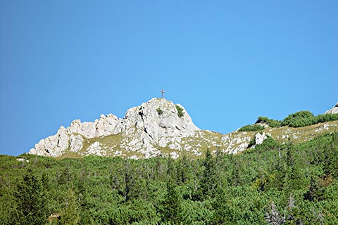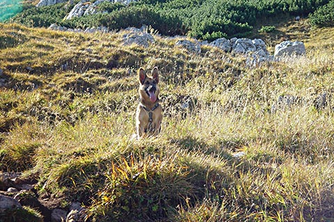 Nach einer kurzen Pause am Fuße des Schneibstein beginnt der Aufstieg durch die Latschen in Richtung Gipfel zum Schneibstein. Jetzt wird aber Pause gemacht und die Aussicht genossen.