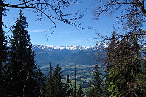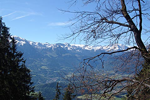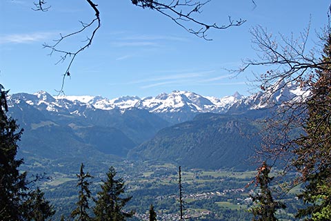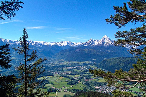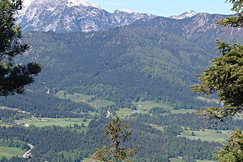 Vom Gipfel des Rauhen Kopf kann der Bergsteiger den gesamten Talkessel des Berchtesgadener Landes überblicken. Hier einige Berge und Gipfel: Der Untersberg mit dem Störhaus, die Kneifelspitze, der Kehlstein, der hohe Göll, das Hohe Brett, der Jenner, das steinerne Meer, der Watzmann, der Hochkalter, das Lattengebirge mit der schlafenden Hexe und der steinernen Agnes.