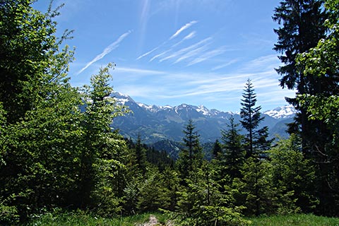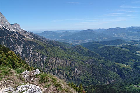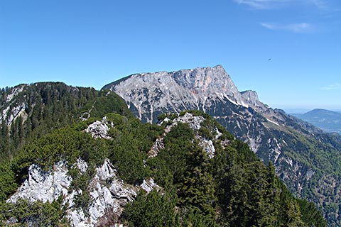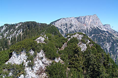 Vom Gipfel des Rauhen Kopf aus kann der Bergsteiger den gleichen Weg wieder nach unten steigen, weiter zum Untersberg gehen oder nach einigen hundert Metern kann auch nach Maria Gern abgestiegen werden.