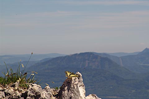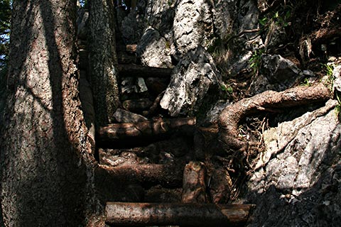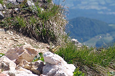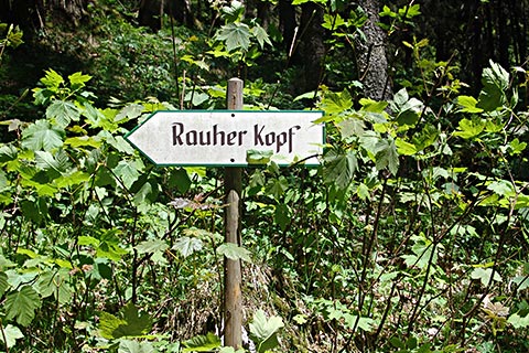 Immer diesen Weg folgend beginnt dann der letzte Teil bis zum Gipfel des Rauhen Kopf. Der letzte Teilabschnitt ist nur für geübte Bergsteiger mit guter Ausrüstung geeignet! Auf dem letzten Teilabschnitt muss der Bergsteiger in Richtung des Rauhen Kopf über Steine klettern, über Leitern steigen bevor er das Panorama auf dem Gipfel des Rauhen Kopf erleben darf.
