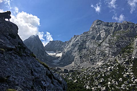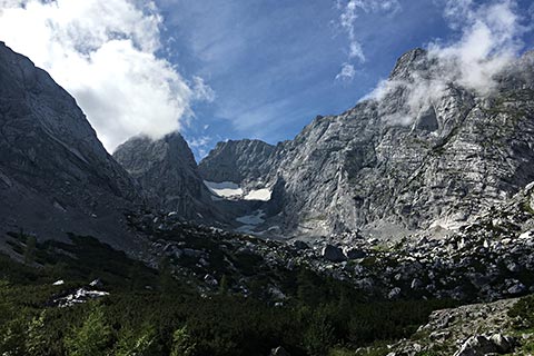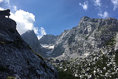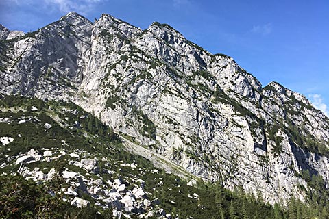 Meist ist die Schärtenalm nur ein Zwischenstopp. Der eine Teil der Bergsteiger geht weiter in Richtung Blaueishütte und der andere Teil auf den Steinberg. Letzterer ist nicht ganz so bekannt und erfordert gute Kenntnisse am Berg.