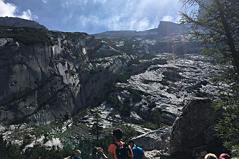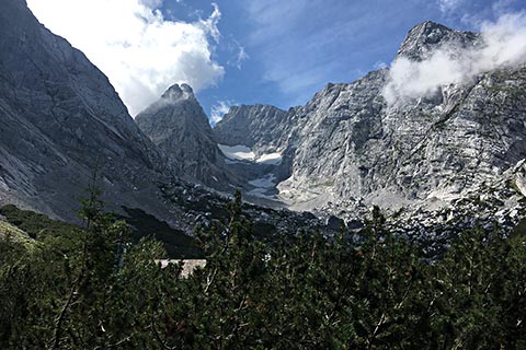 Die Schärtenalm liegt unterhalb des Steinbergs und des nördlichsten Gletschers der Alpen, dem Blaueis. In Sachen Gletscher muss man leider berichten, dass vom Gletscher leider nicht mehr viel übrig geblieben ist. Die Tour auf die Schärtenalm beginnt am Parkplatz Zauberwald am Hintersee und führt durch den Wald den Bergrücken hinauf.