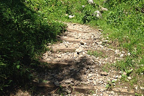 Zuerst erreichen Sie den Zielauslauf des Krautkaserliftes (im Winter). Blicken Sie an dieser Stelle nach links. Entlang des Gebietes der Skiabfahrt führt ein Weg hinauf bis zur Bergstation des Krautkaserliftes am Jenner.