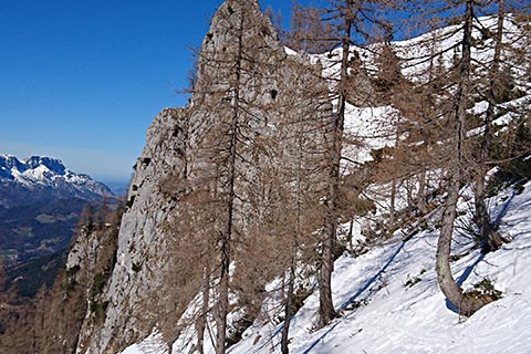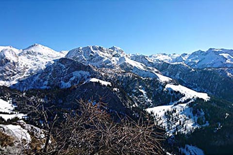Diese Variante kann auch vom Parkplatz am Königssee aus gestartet werden. Um Zeit zu sparen können sie als Tourengeher auch mit der Jennerbahn bis zur Mittelstation fahren und dort die TourenSki anschnallen.