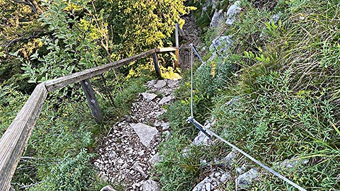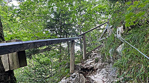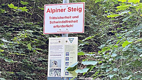 Ich empfehle den kleineren Barmstein. Hier am Fuß des Stein steht bereits das Hinweisschild, dass hier nur die Könner rauf gehen sollen. Es geht über Stufen hinauf. Darauf hin folgen Felsen und Trittstufen im Stein. Der Weg ist mit Seilen gesichert. Trittsicherheit und Schwindelfreiheit ist aber unbedingt notwendig. Spätestens wenn man über einen Spalt quer über die Wand nach Hallein schauen kann. Ganz oben angekommen hat man einen phantastischen Blick. Dieser Reicht vom gesamten Tal von Berchtesgaden mit Hoher Göll, Hohes Brett, Watzmann, Reiteralpe bis zum Untersberg. Aber auch das Salzburger Land breitet sich aus. Auf der Bank auf dem Gipfel lässt es sich lange aushalten.