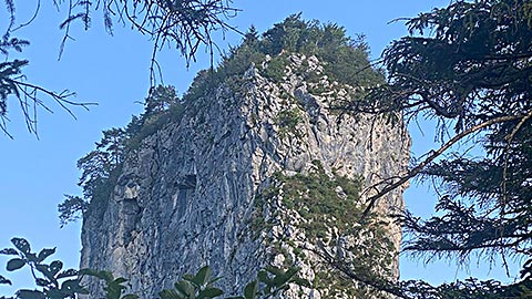 Nun kann der Rückweg direkt erfolgen. Alternativ kann man noch die Ruine Thürndl besuchen, die unweit der Barmsteine steht. Heute findet man noch ca. 9x10 m große Überreste eines Turms. Thürndl gehörte früher zur mittelalterlichen Stadtbefestigung von Hallein. Die Geschichte geht hier bist ins 13. Jahrhundert zurück. Man kann auf einer Tafel lesen, dass dieser Turm noch bis ins 16. Jahrhundert noch von einem Wildhüter bewohnt worden ist. Direkt am Turm führt im Übrigen auch der Arnoweg vorbei. Auf einer Tafel kann man lesen, dass die Überreste 2011 gesichert wurden. Auch wurde mir gesagt, dass bei dem Turm ein Geocache versteckt ist. Also auch hier viel Spaß.