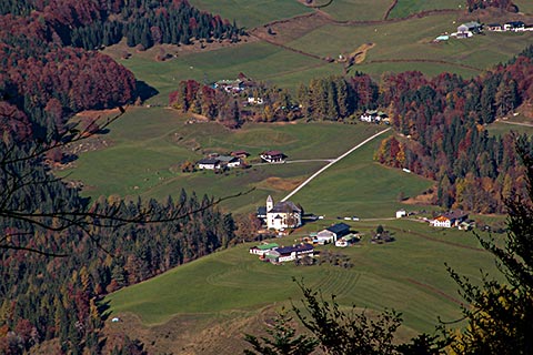 Die Wanderung beginnt etwas unterhalb der Wallfahrtskirche Maria Gern auf dem öffentlichen Parkplatz und führt an der Kirche vorbei zunächst sehr steil nach oben. Nach diesem Steilstück erreicht der Wanderer oder die Familie eine Weggabelung.