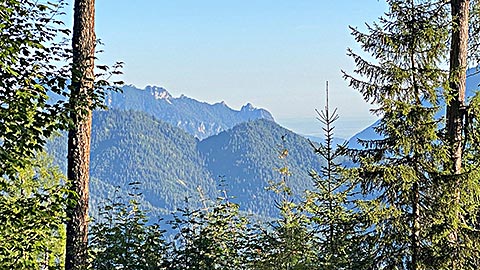 Wir marschieren durch den Wald und erreichen nach einiger Gehzeit die Lichtung der Stubenalm. Die Stubenalm ist bewirtschaftet. Eine Einkehr auf der Alm ist uns noch zu früh und wir gehen links weiter wieder in den Wald bis zur Mitterkaseralm. Auf der Mitterkaseralm ist es dann Zeit für ein Speck- bzw. Käsebrot und ein kühles Bier.