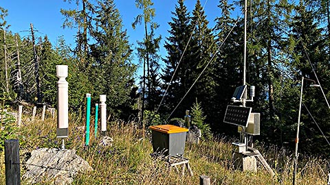 Gleich hinter dem Parkplatz beginnt ein breiter Forstweg. Nach ca. 30 Gehminuten erreichen wir eine Weggabelung.