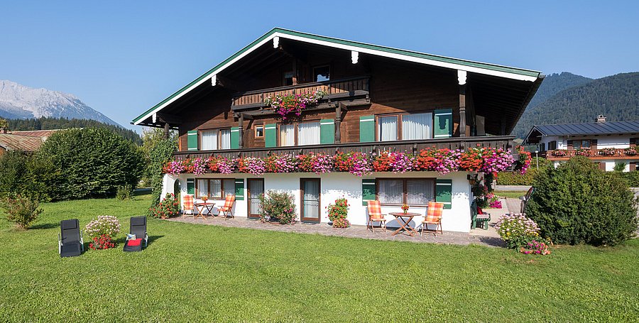 Unser Haus liegt zentral in ruhiger, sonniger Lage in Schönau am Königssee mit freiem Blick auf Wiesen und das Bergpanorama der Berchtesgadener Alpen. Die gemütlichen Ferienwohnungen und unser Garten mit großer Liegewiese werden zu einem erholsamen Urlaub beitragen. Unser Haus ist der ideale Ausgangspunkt für zahlreiche Wanderungen und Bergtouren in die Berchtesgadener Alpen. In nur kurzer Zeit erreichen Sie berühmte Ausflugsziele wie Königssee, Kehlsteinhaus, Obersalzberg oder Salzbergwerk mit dem Auto oder von der nahegelegenen Bushaltestelle. Gaststätten und Einkaufsmöglichkeiten erreichen Sie bequem in kurzer Zeit zu Fuß. Auf Wunsch erhalten Sie Brötchenservice. Im Winter finden Sie eine Langlaufloipe direkt hinter dem Haus. Das Jenner Wander- und Skigebiet lädt ein zu Bergtouren und Mountainbiketouren im Sommer und zum Ski- und Snowboardfahren im Winter. Unsere Gäste können über kostenloses WLAN verfügen.
